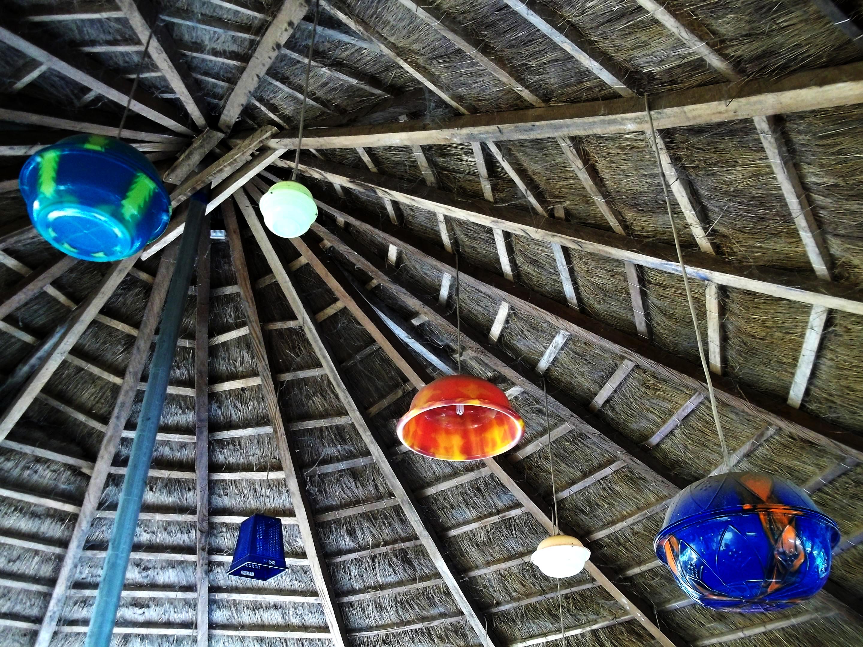 Nice example of “recupération” – reusing, revival, recycling, whatever we want to call it… Lamp shaders in the pavillon in the French Institute in Bobo Dioulasso