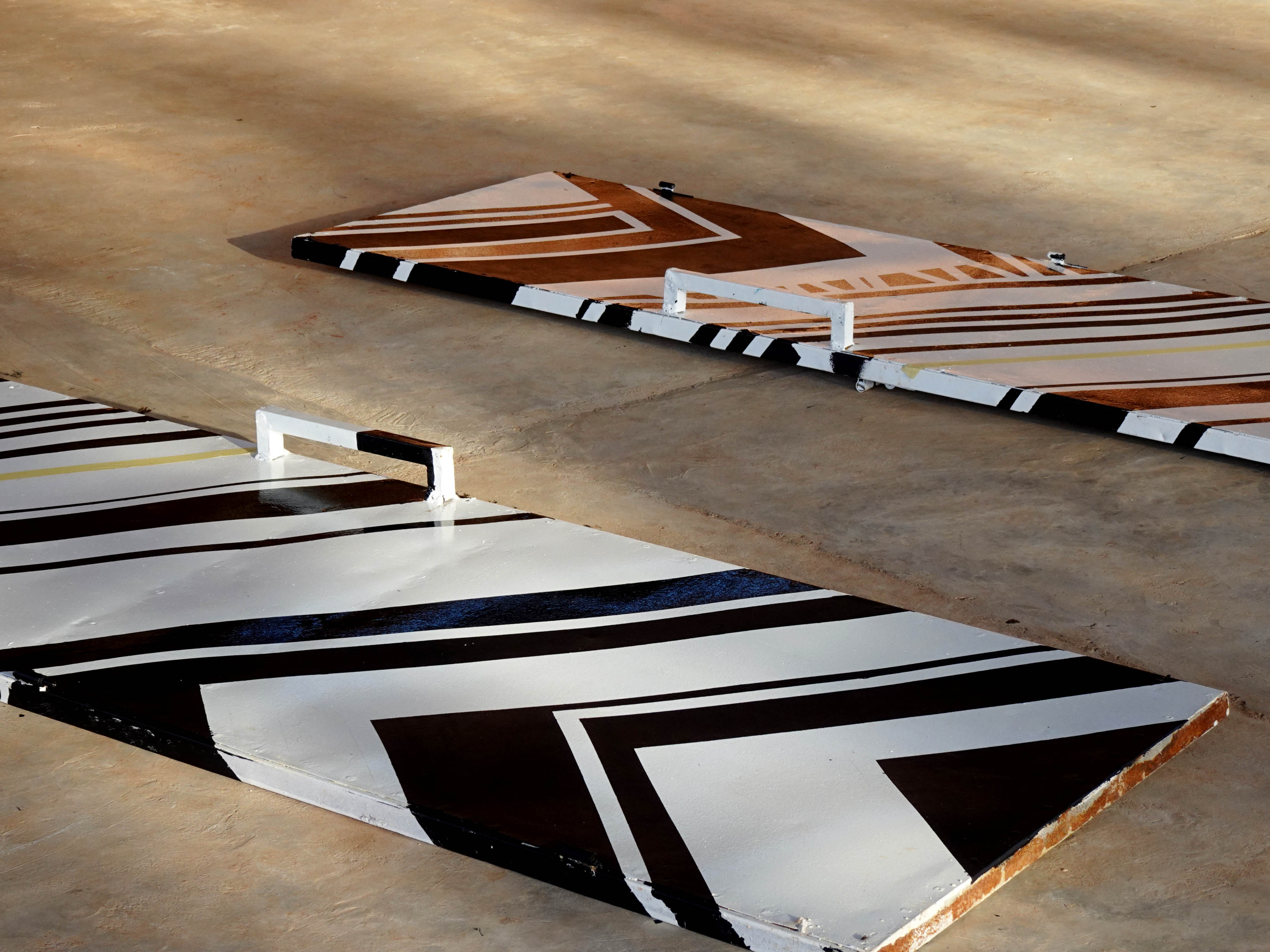 The decorative feature of facades are portholes, custom-made with local female pottery makers. The contact with the exterior is vital for the project, the portholes are symbolic and ornamental at the same moment – it activates the façade-scape without overwhelming the building openings. It solves the dichotomy of situations when it is necessary to preserve the intimacy of creative process on the main stage and when it is demanded to call out for the large audience for public events.